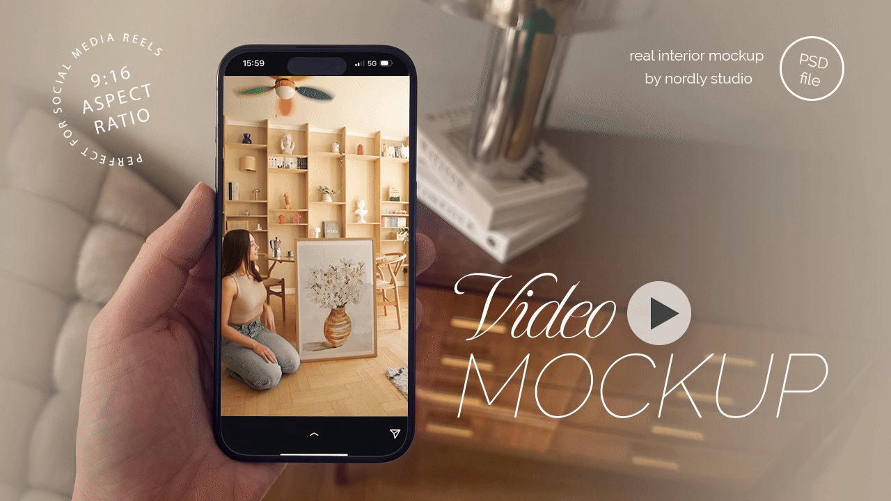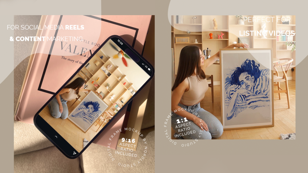 Video Frame Mockup With Person, DIN A Wall Art Reel Mockup Video, 1x1 & 9x16 Aspect Ratio for Reels, PSD Animated Mockup, Video Mockup MOV