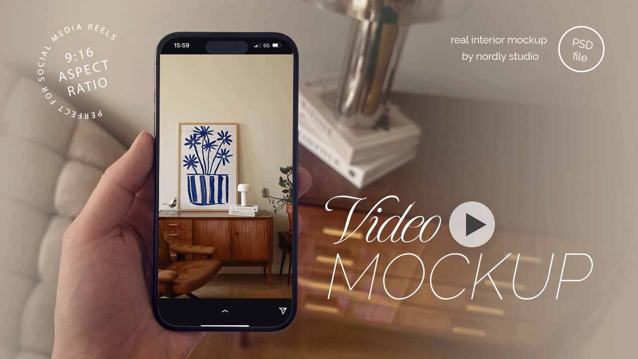 Social Media Wall Art Mockup Video With Person, 1x1 & 9x16 Aspect Ratio for Reels, PSD Animated Mockup, Video Mockup Home Interior MOV